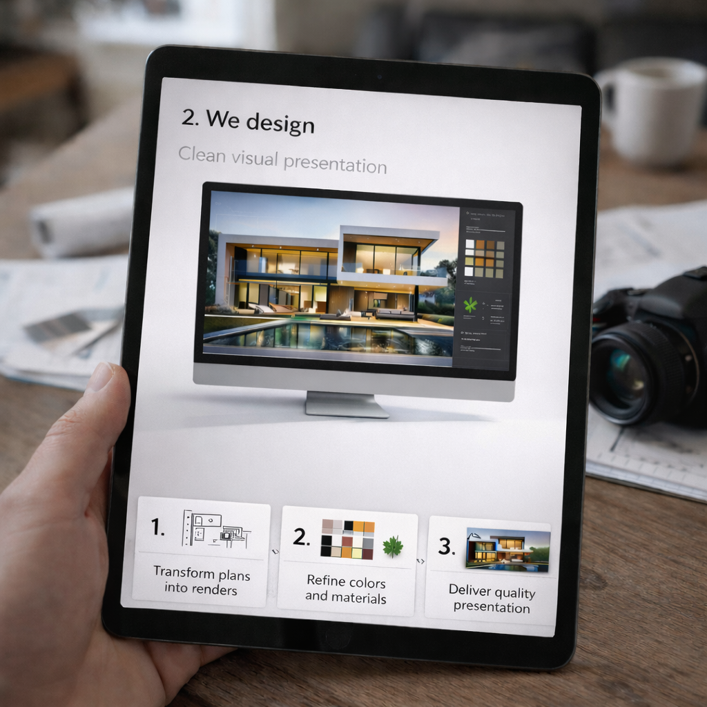 We turn construction ideas into visuals that sell fast, clear, and professional. From CAD/REVIT drawings to photo-real renderings, we make your projects easier to present and win.